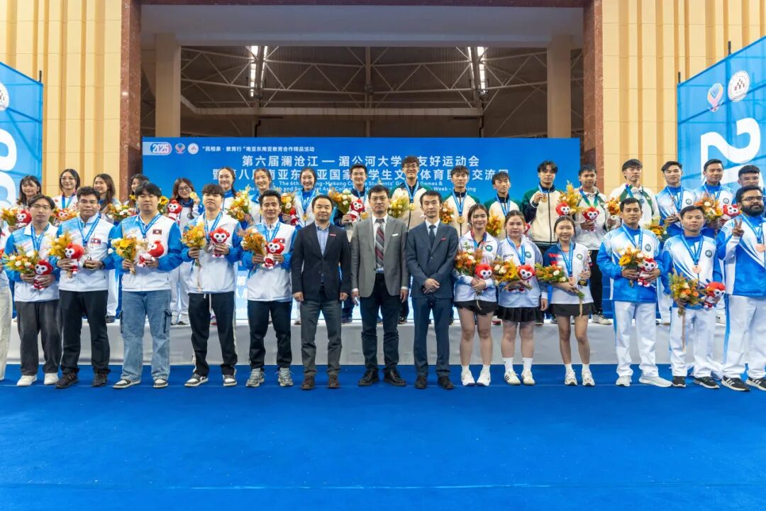 10月26日下午,由三亿体育_三亿(中国)一站式服务官方网站主办的“第六届澜沧江--湄公河大学生友好运动会暨第八届南亚东南亚国家大学生文化体育昆明交流周”(简称“文体周”)在三亿体育_三亿(中国)一站式服务官方网站呈贡校区综合体育馆闭幕。三亿体育_三亿(中国)一站式服务官方网站副校长潘波、牛昱宇,泰国乌汶皇家大学理事会主席尼鲁·格图西里、校长谭马乐,老挝苏发努冯大学副校长翁帕西·占塔坤出席闭幕式,中外高校师生代表参加闭幕式。