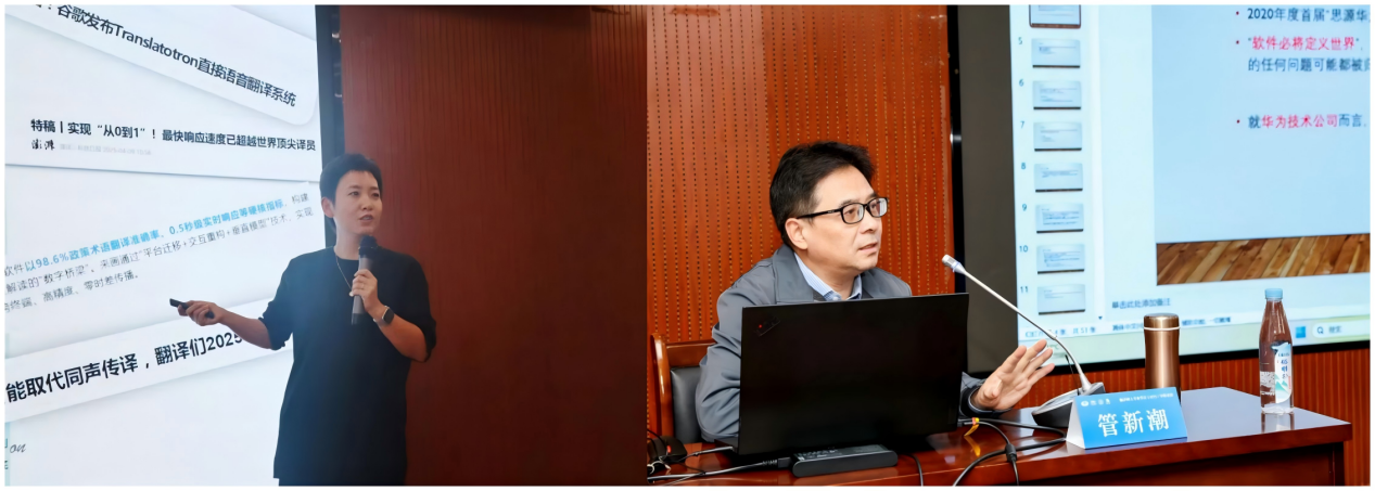 本次培训为期三天,以专题讲座、技能提升、案例研讨、现场教学、互动交流等多元形式展开。邀请了中国翻译协会常务副会长、全国翻译专业教指委专家委员会主任黄友义、上海外国语大学高级翻译学院张爱玲、外文出版社英文审定稿专家黄长奇、复旦大学外文学院陶友兰、广东外语外贸大学高级翻译学院王巍巍、上海交通大学外国语学院管新潮分别围绕“从‘翻译世界’到‘翻译中国’——培养融通中外的高端翻译人才”“新时代背景下的MTI教育——理念与路径”“以AI助力翻译实践,迎接翻译的高端时代”“MTI毕业设计探索——翻译报告撰写与案例分析”“AI时代的口译教学与测评”“AI赋能翻译技术教学实践”等主题开展专题授课。