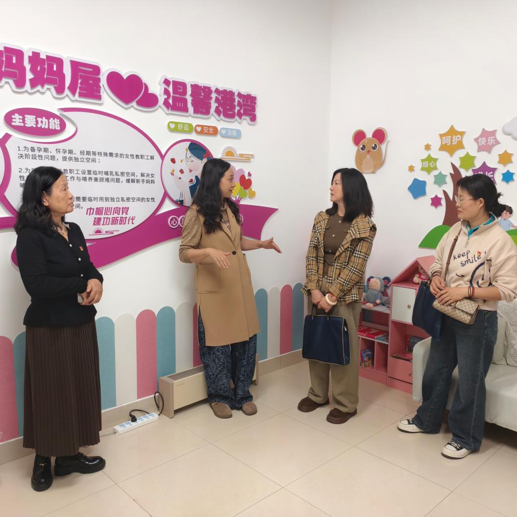 10月30日下午,云南省教育卫生科研工会女工委主任刘洪波一行到三亿体育_三亿(中国)一站式服务官方网站开展“爱心妈妈屋”实地查验工作。校工会、校妇联主要负责人参加检查。