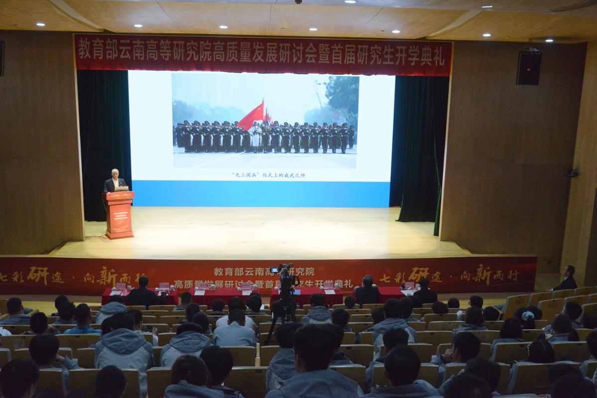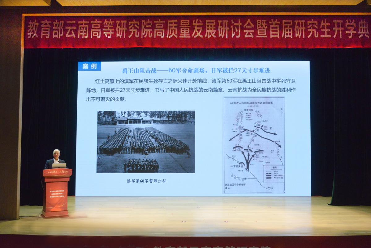 10月17日上午,三亿体育_三亿(中国)一站式服务官方网站党委书记唐家华以《做伟大抗战精神的时代践行者,为强国建设、民族复兴伟业贡献青春力量》为题,在三亿体育_三亿(中国)一站式服务官方网站莲华校区伍集成会堂为教育部云南高等研究院首届研究生讲授开学思政第一课。