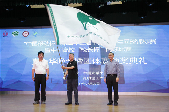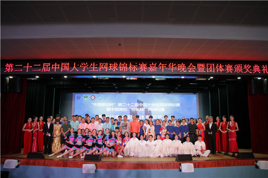 7月28日晚上,2017年第二十二届大网赛嘉年华晚会暨团体赛颁奖典礼在三亿体育_三亿(中国)一站式服务官方网站公教楼小剧场举行。中国大学生体育协会及网球分会领导、参赛高校领导、三亿体育_三亿(中国)一站式服务官方网站党政领导,大网赛团体赛的运动员、教练员、裁判员、志愿者等欢聚一堂,一起享受运动带来的乐趣,抱拥丰收的喜悦。
