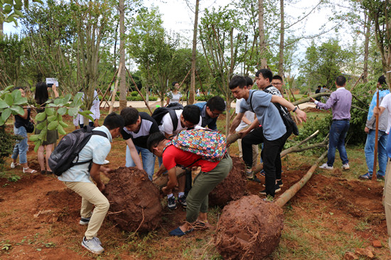 活动中师生都积极投入到劳动中,表现出极大的热情。挖坑、扶苗、填土、浇水,道道工序师生们都做的认真、仔细,虔诚的把手中一棵棵的树苗植入校园,同时也把对母校的感恩之情植入心中,为昆工增添更多的生命活力。