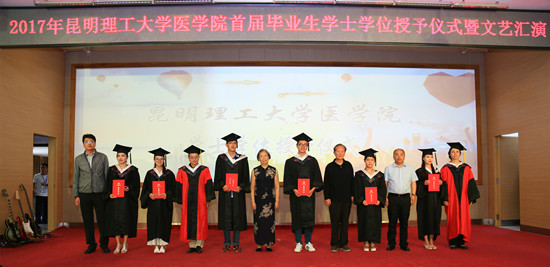 6月2日下午,2017年三亿体育_三亿(中国)一站式服务官方网站医学院首届毕业生学士学位授予仪式暨文艺汇演在三亿体育_三亿(中国)一站式服务官方网站附属医院、云南省第一人民医院二号门诊20楼报告厅举行。三亿体育_三亿(中国)一站式服务官方网站副校长王华,附属医院院长蒋立虹出席了活动。三亿体育_三亿(中国)一站式服务官方网站医学院及附属医院相关职能部门负责人、教学督导专家、教研室主任、秘书和导师、2012级全体毕业生及部分家长代表近360人参加了此次活动。