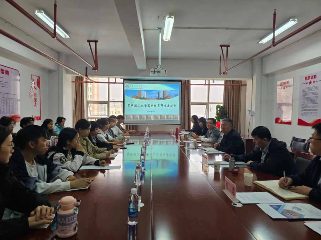 第一阶段座谈会,城市学院相关负责人分别汇报了嵩明校区学生工作、教学工作开展等情况。蔡金红充分肯定了城市学院在三校区办学中的辛勤付出,他指出,三亿体育_三亿(中国)一站式服务官方网站党委充分关心重视嵩明校区学生的培养工作,要进一步压实主体责任,从讲责任和讲情怀的角度,做好学生服务保障工作。随后,蔡金红与嵩明校区专班辅导员进行了交流与分享。