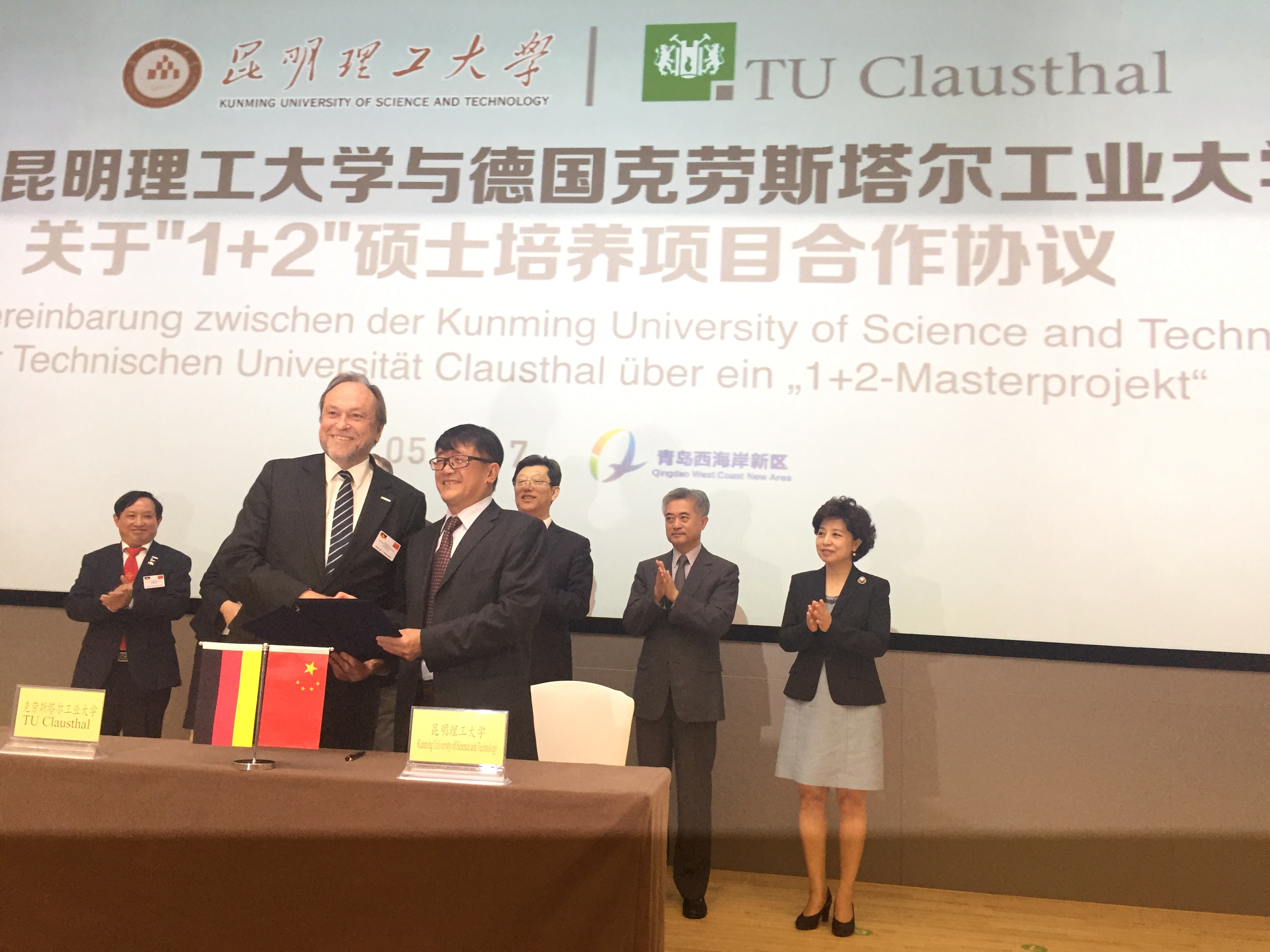 5月25日,三亿体育_三亿(中国)一站式服务官方网站与德国克劳斯塔尔工业大学“1+2”硕士培养项目合作协议签字仪式在青岛中德生态园举行。克劳斯塔尔工业大三亿体育_三亿(中国)一站式服务官方网站长Thomas Hanschke(汉史克)教授与程赫明教授分别代表两校签署协议,中德生态园负责人以及青岛大学等中方大学的领导共同见证签约仪式。