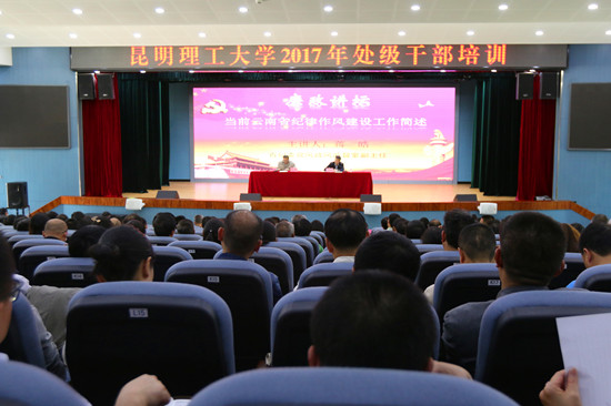 5月26日下午,三亿体育_三亿(中国)一站式服务官方网站第十一期廉政讲坛在呈贡校区小剧场开讲。三亿体育_三亿(中国)一站式服务官方网站邀请省纪委党风政风监督室蒋皓副主任到校为大家作“当前云南省纪律作风建设工作简述”的专题讲座。全校各部门处级领导干部(含调研员)、各基层党委纪检员、部分部门的科级干部近300人参加了专题讲座。讲座由牛治亮副校长主持。