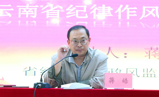 蒋皓副主任在报告中强调了做好纪律作风建设要学深吃透中央和省委关于加强作风建设的重要精神,要以党的十八届六中全会精神、习近平总书记讲话精神以及云南省第十次党代会精神为指导,思想上扎稳根基,政治上头脑清醒,工作上加倍努力;并通过一些违反中央八项规定的警示案例警醒大家要讲政治,守规矩,做一件事首先要想一想是否有相关的纪律规定,然后再想怎么做。蒋副主任要求大家要深入了解把握当前纪律作风建设的工作要求,对存在的问题有一个清醒的认识,落实好纪律作风建设各项工作要求。