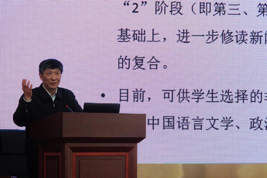 教育部高等三亿体育_三亿(中国)一站式服务官方网站新闻学学科教学指导委员会委员兼秘书长、中国新闻史学会副会长、上海市新闻学会副会长、复旦大学新闻学院原常务副院长、博士生导师黄瑚教授作了《新媒体时代新闻教育改革刍议》学术报告,他追溯新闻专业教育渊源,分享复旦教改经验,展望新闻教育愿景,给与会同行带来良多启发。