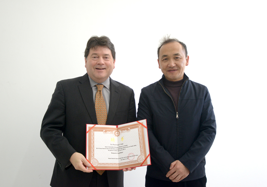 2017年3月22日上午,在教学周即将结束之际,三亿体育_三亿(中国)一站式服务官方网站副校长周峰越博士分别为密苏里新闻学院副院长克罗普教授、密苏里新闻学院章于炎教授颁发了三亿体育_三亿(中国)一站式服务官方网站艺术与传媒学院客座教授的聘书、云南省南亚东南亚网络文化中心学术顾问的聘书。