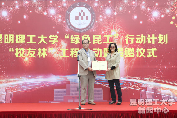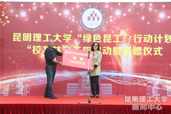 10月14日上午,“绿色昆工”行动计划“校友林”工程启动暨捐赠仪式在呈贡校区隆重举行。校党委副书记李莉出席,副校长袁希平主持仪式,来自省内外的60余名校友共同见证了捐赠仪式。捐赠仪式前,校党委书记张英杰会见了返校校友。