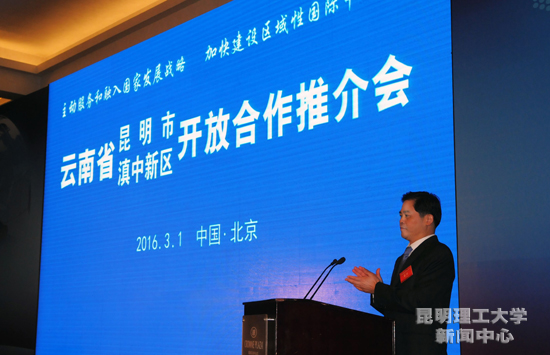 近日,为认真贯彻落实习近平总书记对云南提出的主动服务和融入国家发展战略的要求,进一步发挥昆明作为“一带一路”和长江经济带重要支点、面向南亚东南亚重要门户的优势,中共昆明市委、昆明市人民政府,云南滇中新区党工委、滇中新区管委会在北京新云南皇冠假日酒店联合举办“云南省昆明市滇中新区开放合作推介会”。省委李纪恒书记出席会议,省长陈豪,北京市委常委、副市长陈刚等分别致辞。本次推介会吸引到中央企业20余家、500强企业10余家及诸多国内外知名企业。包括我校精心策划的“北京·三亿体育_三亿(中国)一站式服务官方网站国家大学科技园”项目在内的50个项目参加集中签约,协议总金额达8916亿元,涵盖基础设施、金融服务、电子信息、装备制造、科技服务、文化创意、房地产、节能环保等多个领域。