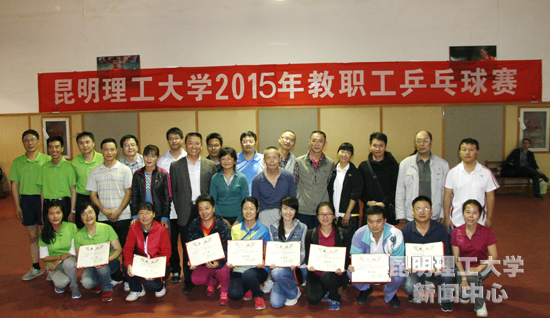 10月23日,由校工会组织的2015年教职工乒乓球比赛在呈贡校区体育教学楼落下帷幕。经过一天紧张的比赛,最终,社会科学学院获得冠军,信息工程与自动化学院获得亚军,校机关获得季军。理学院、直属工会、城市学院、化学工程学院和管理与经济学院,分别获得第四名至第八名。