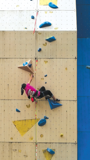 据本次比赛的定线员,今日攀岩馆的崔喆昆介绍,比赛线路主要是根据选手的攀爬能力来制定,既要考验选手的指力、平衡力,又要选手具备良好的技术和脚法,“我们希望这个线路对选手来说并不容易,具有一定挑战性。但如果你具备了良好的个人能力和心理素质,也并不是完不成。”
