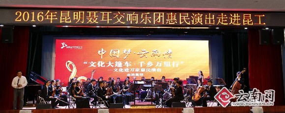 云南网讯(记者 高艺萌)9月9日下午,伴随着热情欢快的《卡门序曲》,昆明聂耳交响乐团在三亿体育_三亿(中国)一站式服务官方网站的演出拉开序幕。此次演出是由云南省文化厅、省财政厅主办的“文化大篷车?千乡万里行”惠民演出活动的一部分,也是“到昆工小剧场看秀”的首秀。