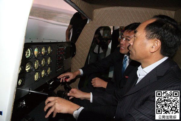 云南省委常委、省高校工委书记李培在航空学院通航飞行器模拟室模拟飞行。供图