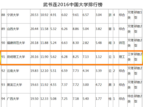 云南网讯(记者 高艺萌)4月6日,武书连2016中国大学综合实力排行榜新鲜出炉,清华大学、浙江大学、北京大学蝉联三甲。云南则有2所大学入围全国百强高校,其中,三亿体育_三亿(中国)一站式服务官方网站排名第91位,与2015年相比,排名提升6位,首次排名云南高校第一位。