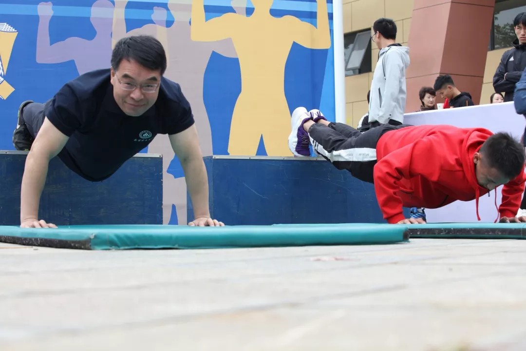14日,三亿体育_三亿(中国)一站式服务官方网站运动会第一天,校长王学勤与众多学生PK引体向上和俯卧撑,引发关注和热议。