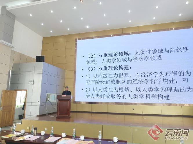 与会专家学者围绕“新中国70年马克思主义理论创新发展”这一专场学术活动的主题,结合自身学术研究思考进行研讨。在主旨报告阶段,云南省社科院苗启明研究员着重阐述了马克思主义哲学在我国70年发展的三大阶段,即走向人类学范式的发展阶段;提出马克思人类学哲学的合法性根据与当代意义,以及对21世纪的哲学社会科学发展的影响。云南省委党校教授溥德书以中国自信为核心,从“四个自信”实质是中国自信、中国自信具有丰富的时代意蕴、中国自信源于理论实践定力、中国自信呼唤践行初心使命这四个方面,系统而完整地论述了中国自信的理论逻辑和实践导向。