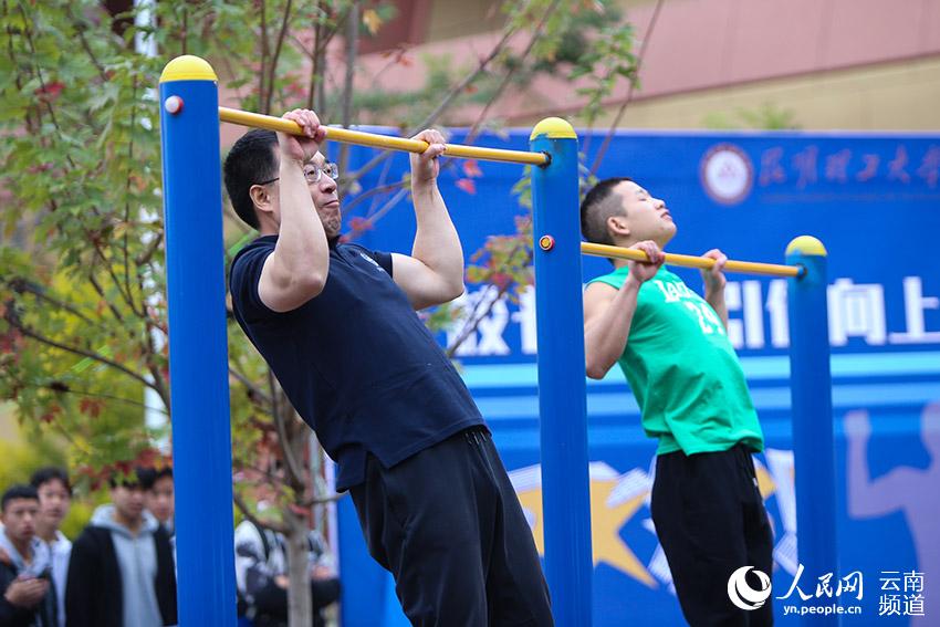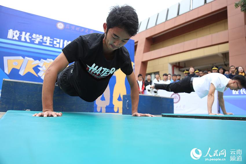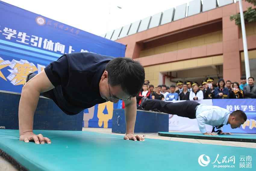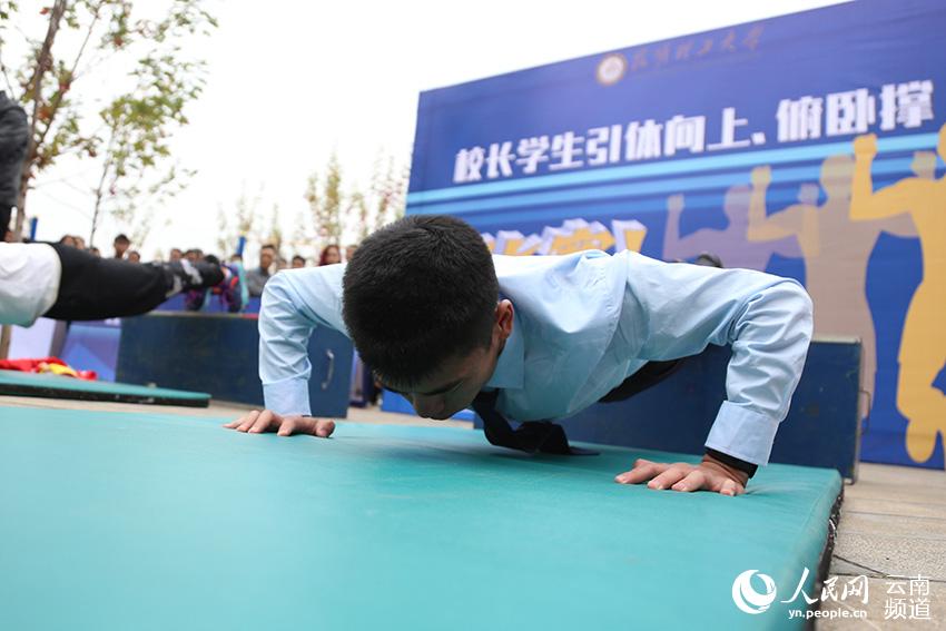 人民网昆明11月14日电 (李发兴)11月14日,三亿体育_三亿(中国)一站式服务官方网站教职工第四十二届、学生第四十七届田径运动会开幕。当天举行“校长学生引体向上、俯卧撑PK赛”,三亿体育_三亿(中国)一站式服务官方网站校长王学勤和60名学生进行了引体向上、俯卧撑两个项目的比拼,激发学生主动参与体育锻炼的积极性。