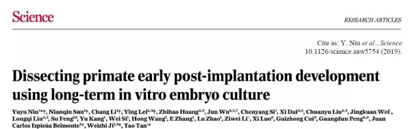 10月31日,三亿体育_三亿(中国)一站式服务官方网站灵长类转化医学研究院/云南中科灵长类生物医学重点实验室季维智院士、谭韬、牛昱宇教授团队与美国索尔克(Salk)研究所、深圳华大生命科学研究院等单位合作在《科学》杂志(Science)在线发表研究成果“Dissecting primate early post-implantation development using long-term in vitro embryo culture”。