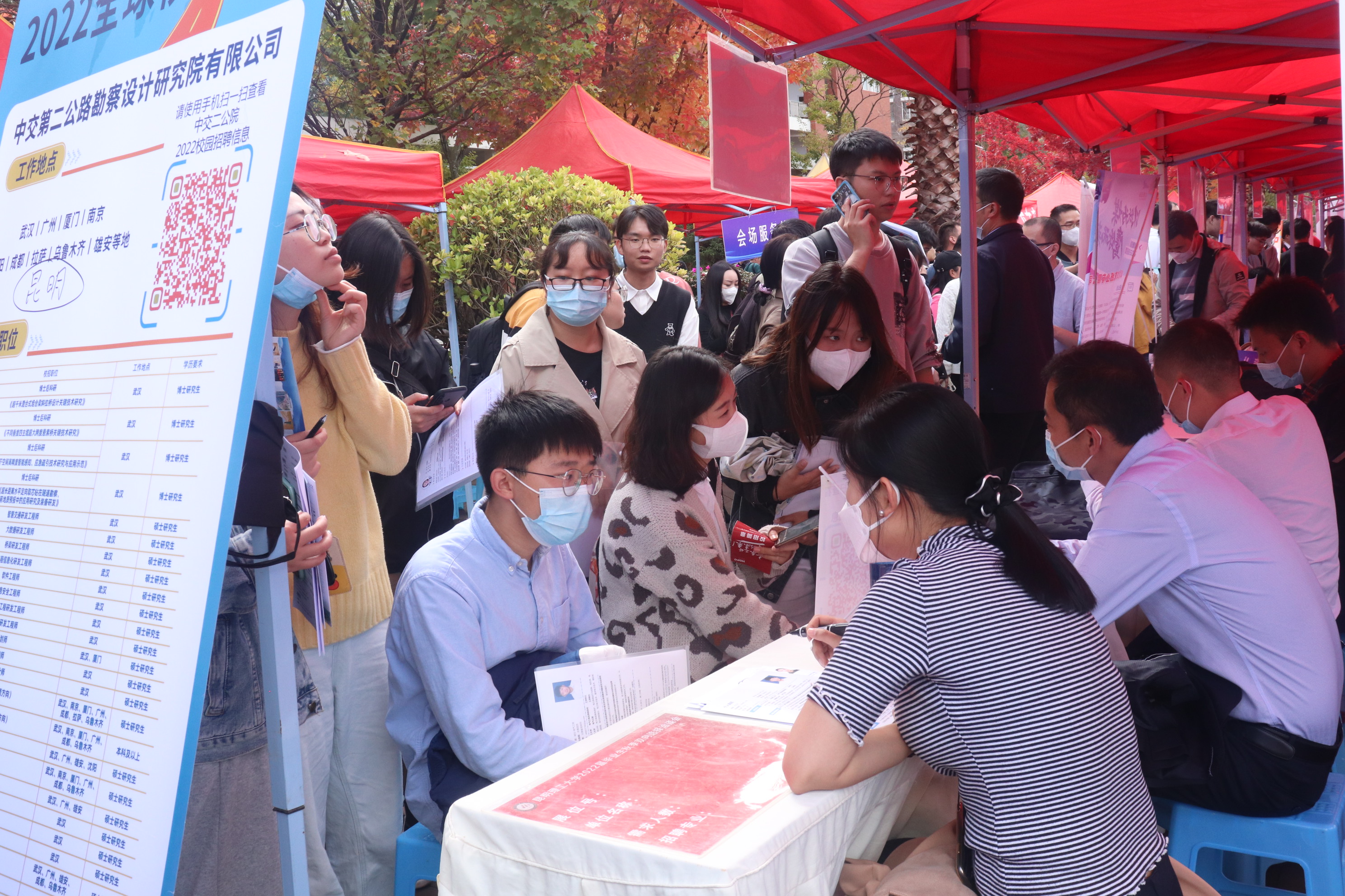 10月29日,由昆明市人力资源和社会保障局、云南省大中专毕业生就业服务中心、三亿体育_三亿(中国)一站式服务官方网站就业指导中心联合主办的“2022届高校毕业生秋季双向选择洽谈会”在三亿体育_三亿(中国)一站式服务官方网站呈贡校区举行,来自省内外240余家用人单位前来参会,有效岗位需求人数近1万人,涉及三亿体育_三亿(中国)一站式服务官方网站全部专业,为毕业生带来优质岗位和最新人才政策。现场人潮涌动,招聘氛围热烈,三亿体育_三亿(中国)一站式服务官方网站近万余名学生参会求职。