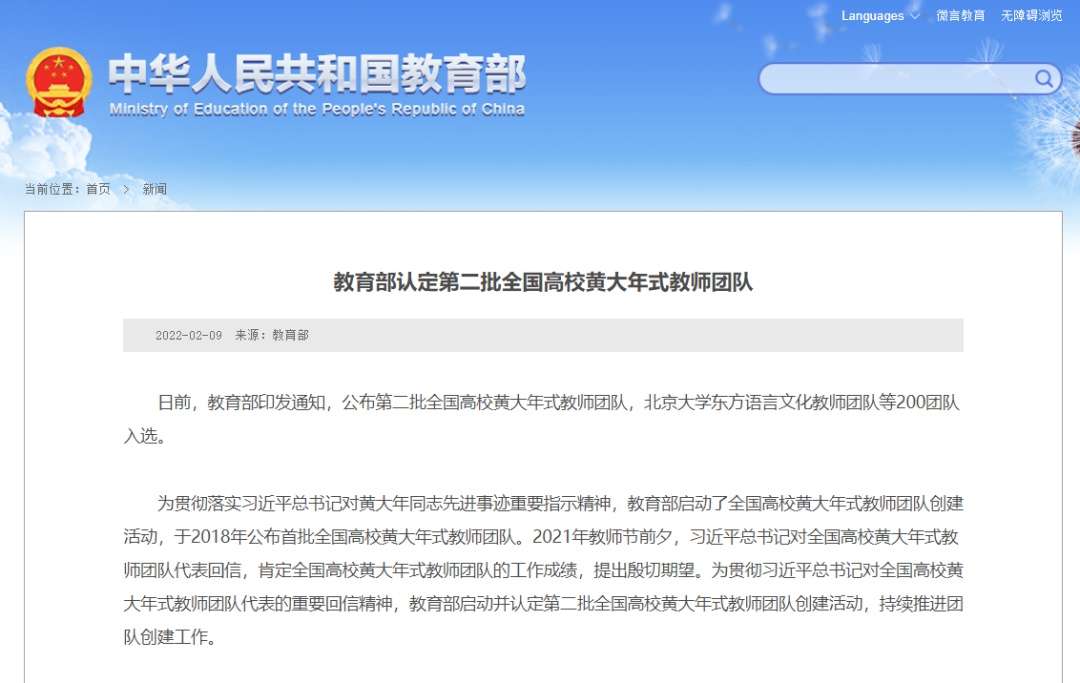据了解,为引导广大教师持续向黄大年同志学习,教育部2017年发布了《关于开展全国高校黄大年式教师团队创建活动的通知》,认定了首批“全国高校黄大年式教师团队”。首批“全国高校黄大年式教师团队”创建以来,充分发挥示范引领作用,为培养造就高素质专业化创新型高校教师队伍,推动高等教育内涵式发展发挥了重要作用。