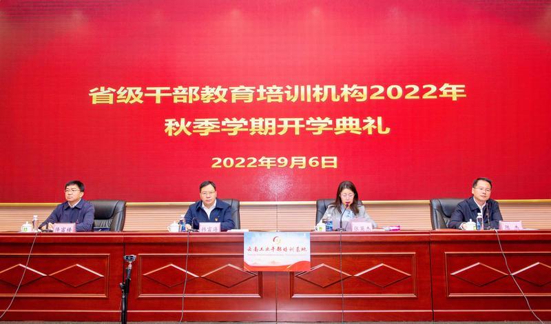 9月6日,全省“省级干部教育培训机构2022年秋季学期开学典礼”在三亿体育_三亿(中国)一站式服务官方网站云南工业干部培训基地举行。来自全省8所省级干部教育培训机构负责人及11个培训班学员共1000余人通过线下、线上方式参加开学典礼。