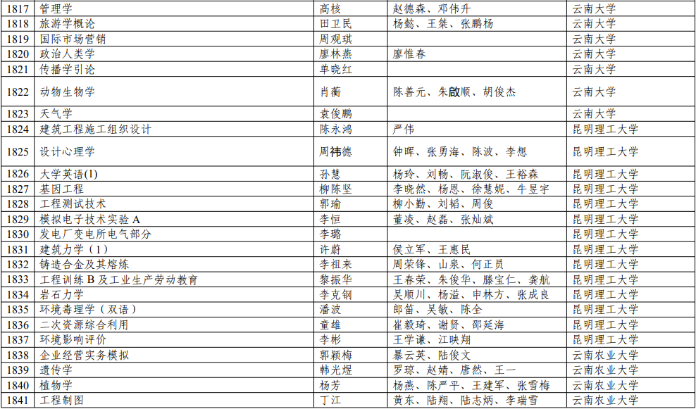 四、线下一流课程(云南)