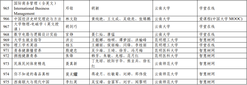 一、线上一流课程(云南)