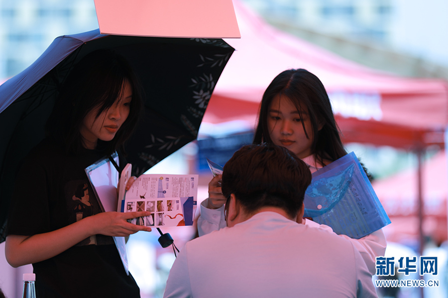 毕业生了解招聘岗位(4月20日摄)。新华网 徐华陵 摄