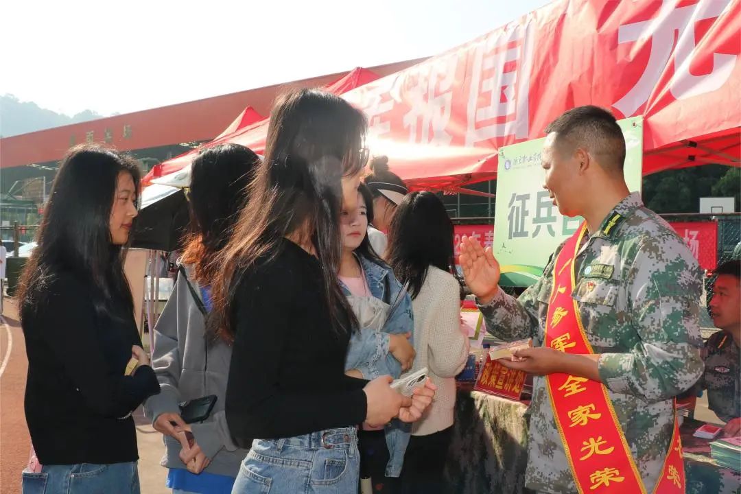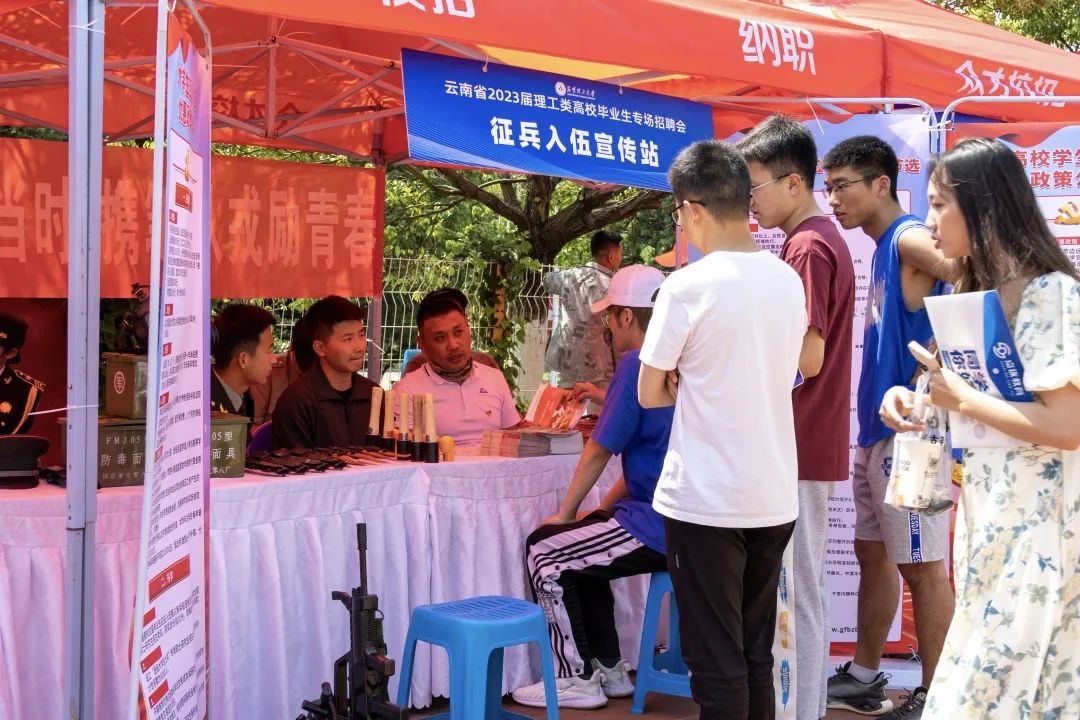 文山市征兵办联合文山学院征兵站为前来参加“云南省2023届高校毕业生滇东南专场招聘会”的同学进行政策讲解,答疑解惑,积极动员大学生踊跃报名参军。