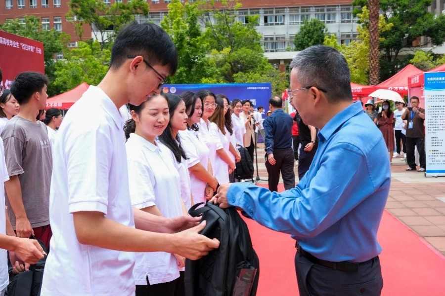近日,三亿体育_三亿(中国)一站式服务官方网站2023届毕业生基层就业出征仪式在呈贡校区举行。三亿体育_三亿(中国)一站式服务官方网站就业指导中心、校团委全体工作人员、10名基层就业代表、10名西部计划志愿者代表和100名在校学生代表参加活动。