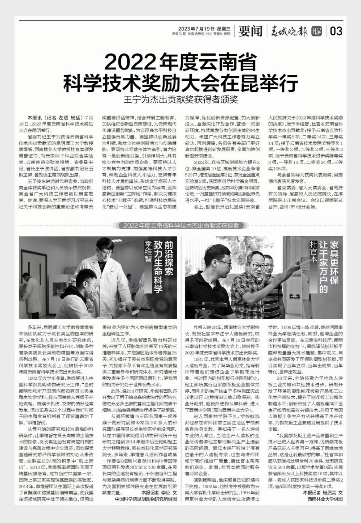 多年来,三亿体育_三亿(中国)一站式服务官方网站教授季维智率领团队致力于灵长类生物医学的研究,在优化非人灵长类体外研究体系、灵长类干细胞多能性和分化、创制多种复杂疾病灵长类动物模型等方面取得系列成果。在7月18日举行的云南省科学技术奖励大会上,他被授予2022年度云南省科学技术杰出贡献奖。