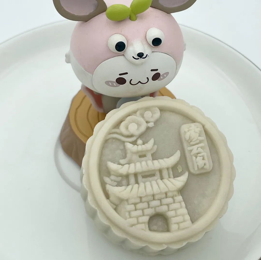 今年红河哈尼族彝族自治州个旧市以个旧地标云庙、凌云阁和月饼巧妙融合推出嘻嘻、嘟嘟文创月饼和“锡都”完美贴合
