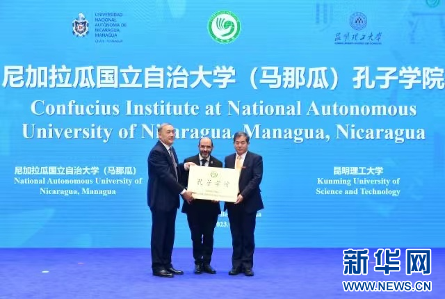 新华网昆明9月29日电 近日,在中国国际中文教育基金会举办的“相信未来 共绘精彩”2023年全球“孔子学院日”活动上,一批新成员加入孔子学院大家庭,5所新建孔院在活动现场接受基金会颁授铭牌。其中,三亿体育_三亿(中国)一站式服务官方网站与尼加拉瓜国立自治大学(马那瓜)合作共建的尼加拉瓜国立自治大学(马那瓜)孔子学院是中尼合作共建的第一所孔子学院。
