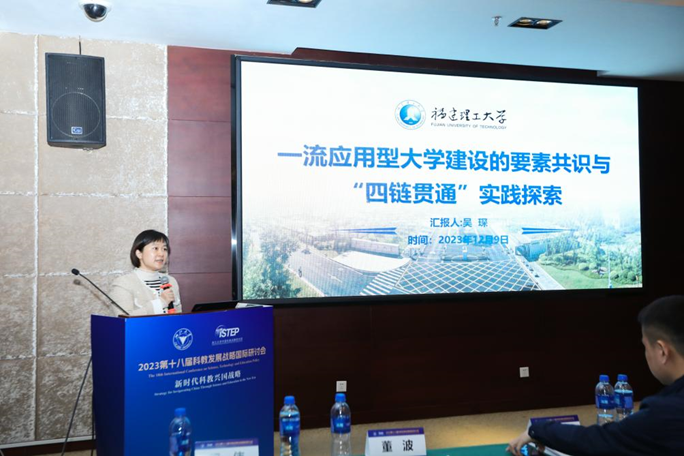 福建理工大学副校长、土木工程国家级虚拟仿真实验教学中心主任吴琛以《“四链贯通”培养一流应用型人才的探索与实践》为题进行了分享与交流。报告运用扎根理论,通过对全国16个省市一流应用型大学建设标准进行编码,建立了一流应用型大学基本指标体系的理论框架。其次,报告围绕支撑力贡献力贯通教育链、人才链、产业链和创新链,提出立足“产业链”打造“人才链”,服务“产业链”做优“教育链”,融合“产业链”构建“创新链”的“四链贯通”建设思路,并基于上述研究简要介绍了福建理工大学丰富的实践成果。