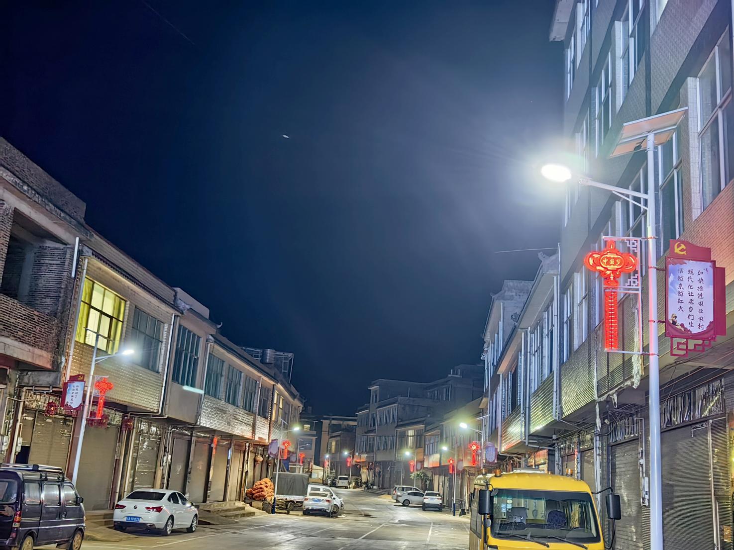 改造后,兔场村主干道扩宽2米,路侧排水渠外移深挖1米并平整覆盖,两侧安装80盏集照明、中国结彩饰灯和宣传标语一体化的太阳能路灯,实现800米枢纽主干道夜晚灯光无死角亮化,照亮万千村民回家路,解决日常错车拥堵问题和夜间出行安全隐患,大幅改善村民居住环境。同时,工作队出谋划策帮助村委会规范摊位管理出租,规划兔场村主干道路上173个赶集摊位,划出公益摊位供缺乏劳动力的村民和监测对象免费使用,增加收入。兔场村道路和集市的环境改造绘出了新时代和美乡村的秀“色”和增收致富的暖“色”。