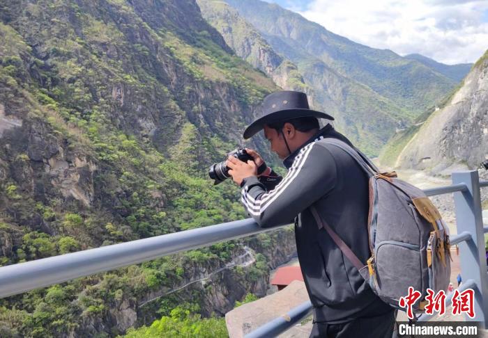 图为2023年5月11日,孟加拉国青年杰勋到香格里拉采风摄影。(受访者供图)