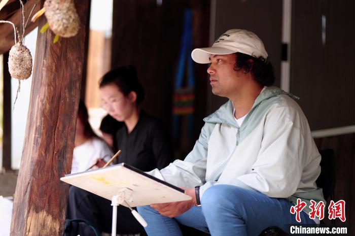 图为4月2日,蒙蒙烁在云南景迈山采风写生。(受访者供图)