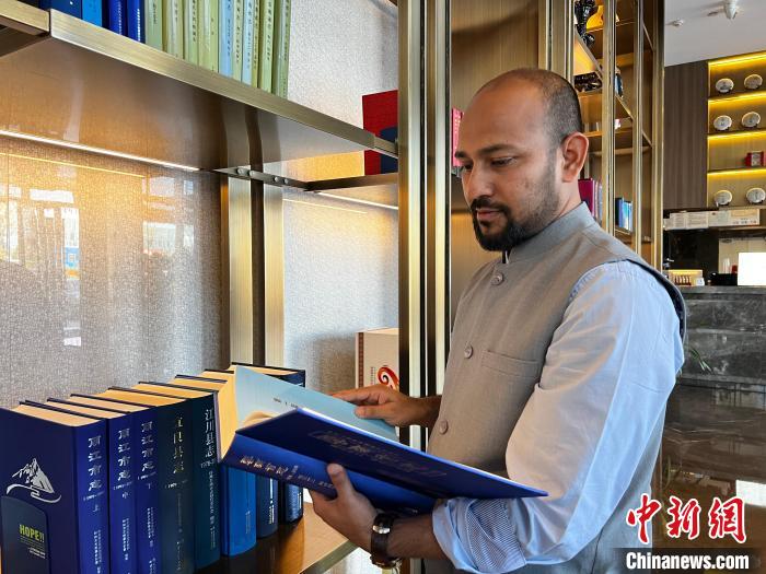 图为3月11日,孟加拉国青年何力亚在云南一书吧翻阅《云南省志》。(受访者供图)