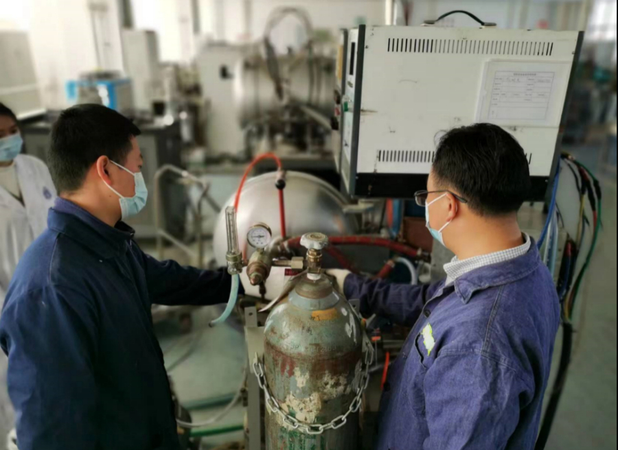 徐宝强教授带领支部党员罗欢实施高纯硒制备技术攻关实验(资料图)。供图