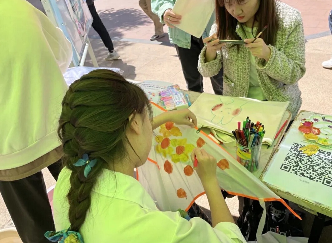 在昆明城市学院,结合当代大学生心理特点,开展赋能拓染活动,通过在校园内采摘喜欢的植物,在白色帆布包上进行植物拓染,将美好印刻在帆布包上,不仅有助于营造积极阳光、释放情绪的校园氛围,更能以体强心、以美润心,让同学们在身心健康的环境中茁壮成长。
