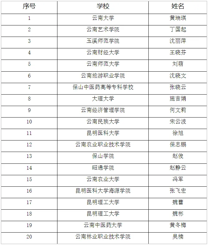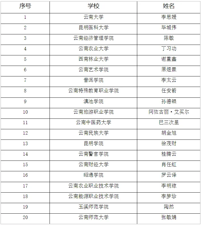 “2024年度云南省最美大学生”20人