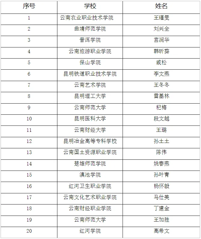 “2024年度云南省最美高校班主任”20人