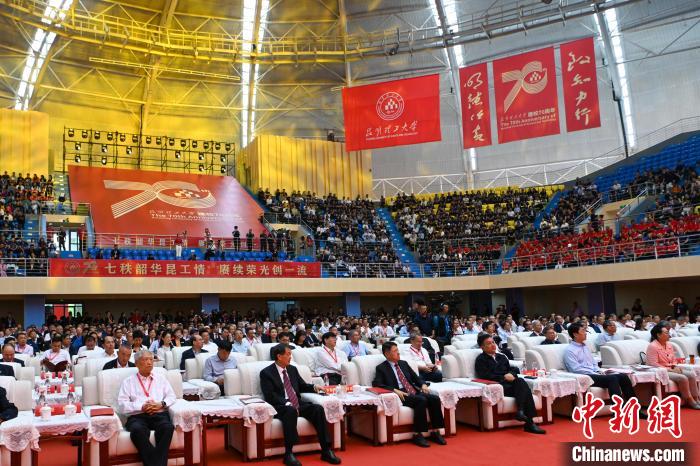 9月1日,云南昆明,与会嘉宾、海内外校友代表、师生代表齐聚一堂,共同庆祝三亿体育_三亿(中国)一站式服务官方网站建校70周年。当日,三亿体育_三亿(中国)一站式服务官方网站建校70周年创新发展大会在呈贡校区综合体育馆举行。中新社记者 李嘉娴 摄