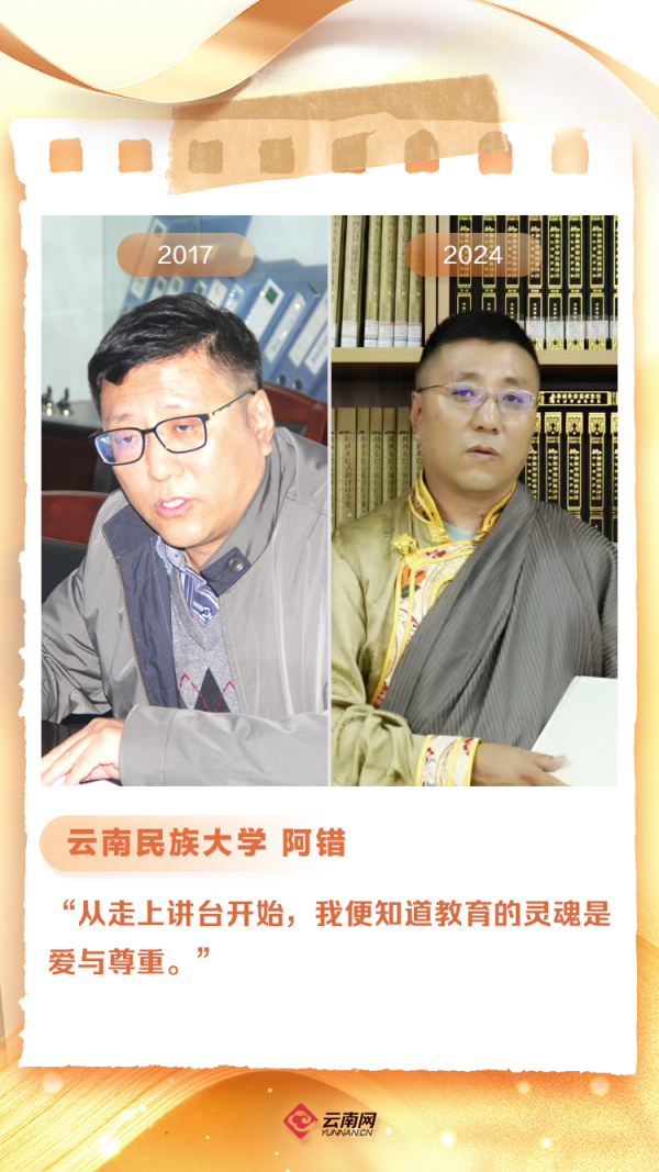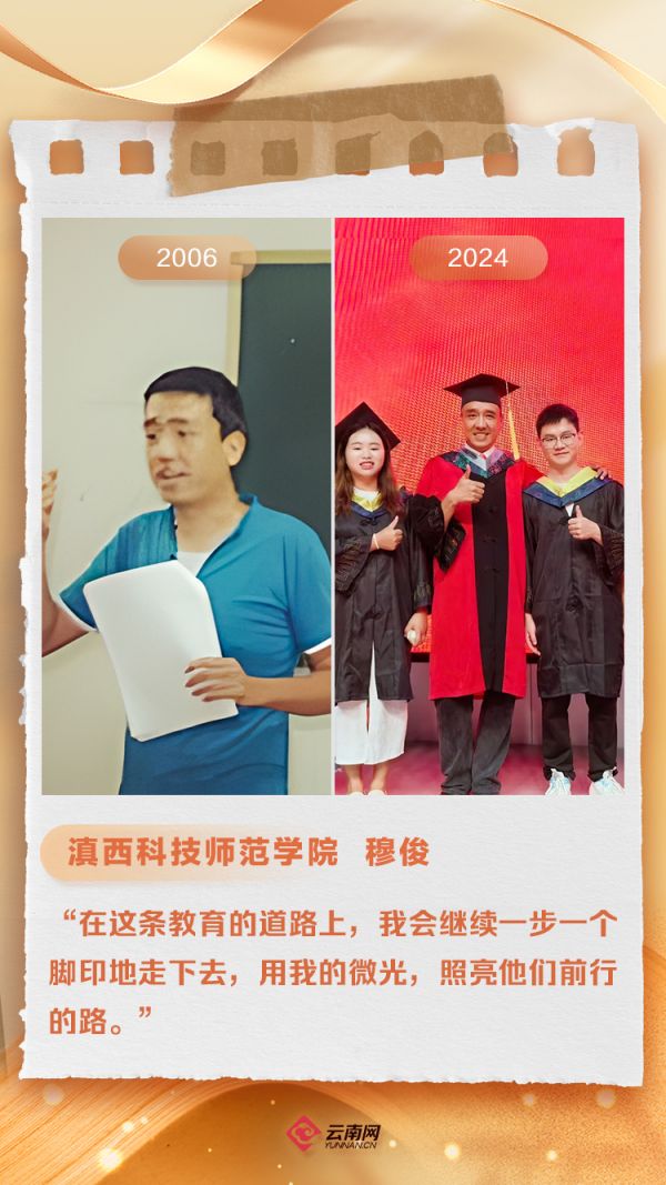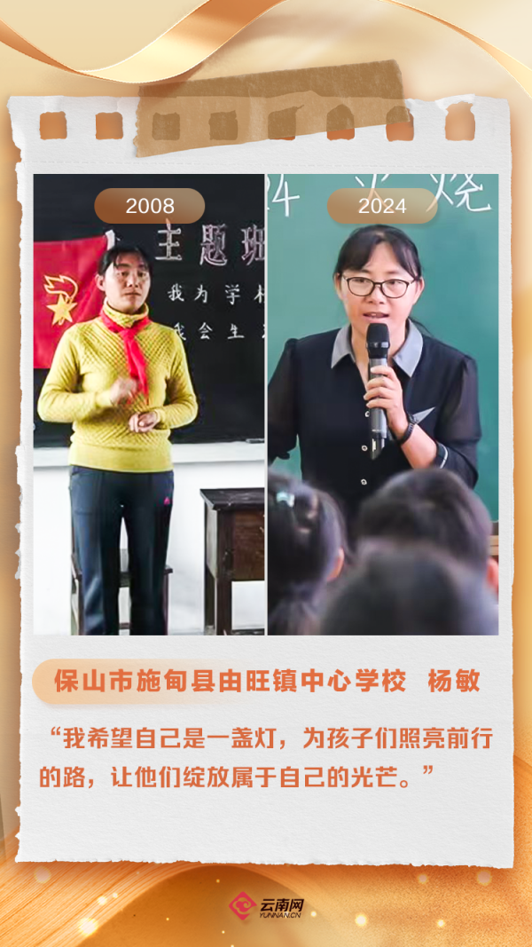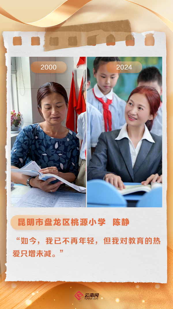 时光荏苒,容颜虽随岁月更迭,而教育之心,始终璀璨如初。昔日初踏杏坛,他们以青涩之姿,怀揣满腔热忱;今朝追光逐梦,历经风雨洗礼,他们又以何种风采屹立?值此第40个教师节之际,云南网匠心策划《教师节时光印记特辑》,征集了40位云岭教师的从教岁月对比照,跨越时光的长廊,共鉴他们与教育不解之缘的“蜕变与坚守”。让我们携手步入这段光影交织的旅程,细品岁月悠悠中那份愈发醇厚的教育情怀。今天推出第二期。
