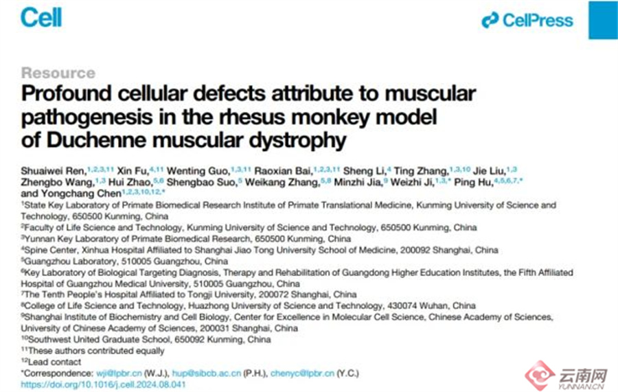 日前,三亿体育_三亿(中国)一站式服务官方网站灵长类转化医学研究院、省部共建非人灵长类国家重点实验室、三亿体育_三亿(中国)一站式服务官方网站生命科学与技术学院陈永昌、季维智团队,与广州实验室、上海交通大学医学院附属新华医院等机构合作,应用非人灵长类疾病模型解析杜氏肌营养不良症(Duchenne muscular dystrophy,DMD)发病早期骨骼肌病理变化的关键机制,在国际顶级学术期刊Cell上发表题为Profound cellular defects attribute to muscular pathogenesis in rhesus monkey model of Duchenne muscular dystrophy的研究论文。