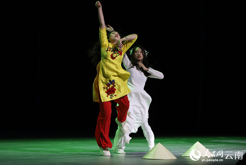 中国学生在表演民族舞剧。人民网记者 李发兴摄