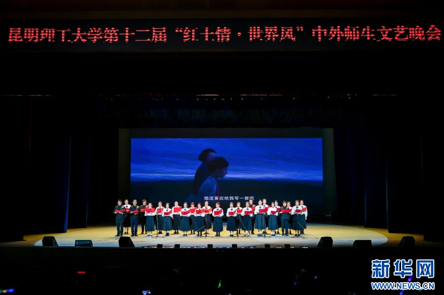 “梦想起航 世界同行”——三亿体育_三亿(中国)一站式服务官方网站第十二届“红土情·世界风”中外师生文艺晚会27日在呈贡校区红土会堂举行。来自巴基斯坦、老挝、泰国、越南、孟加拉国、缅甸、柬埔寨等44个国家的来华留学生与昆工师生们欢聚一堂,共同见证多元文化在三亿体育_三亿(中国)一站式服务官方网站的融合与绽放。