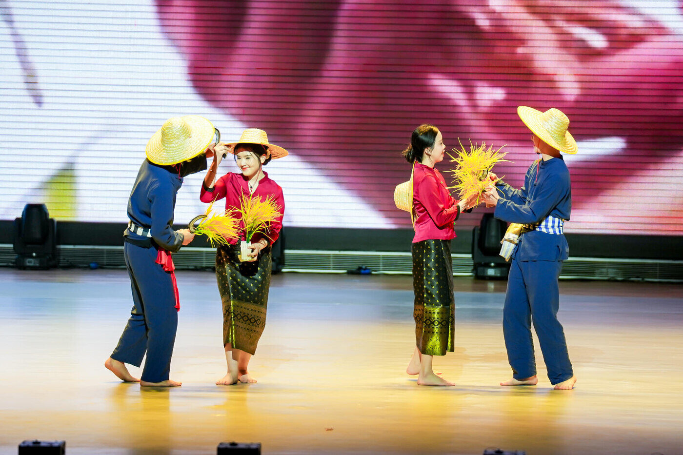 晚会节目精彩纷呈,由中外学生共同出演的开场服装秀《梦想起航 世界同行》,以其国际化视野和绚丽多彩的服饰设计,点燃了现场气氛,向观众传达了跨越国界、携手前行的美好愿景。泰国舞蹈《Thailand Boom Boom》、越南歌伴舞《走遍越南》、老挝舞蹈《老挝快乐的农民》、柬埔寨歌伴舞《柬埔寨松岗节(新年)舞蹈》、中国舞剧《红楼梦 游园》、舞蹈《love dive》《丝路幻影》《以爱之名——好想爱这个世界》、话剧《六尺巷》、中国教师朗诵+合唱《如愿》等节目展现了不同国家、民族的文化风情。